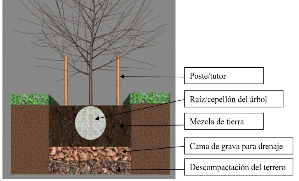 Se realizará una compactación manual ligera alrededor del tronco con el objetivo de mejorar el anclaje del árbol al terreno.